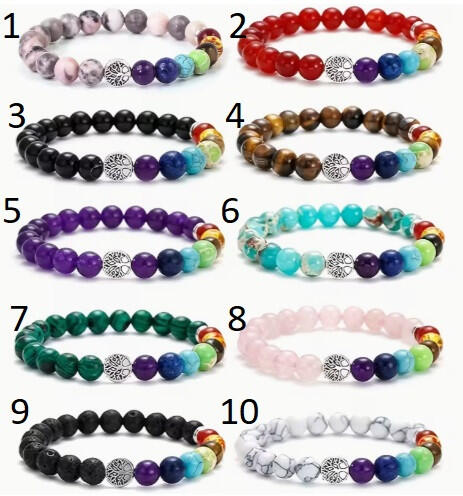 7 Csakra Életfa Rózsaszín Zebra Jáspis (1) Karkötő (K146) Hossz: 19cm