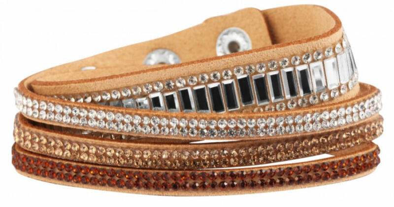 Többsoros kristályokkal kirakott divat karkötő, 2x42 cm - bézs.  Modell: CC0466.  Márka: Cham Cham. Mérete: 2x42 cm. Anyaga műbőr,  fém és kristály.