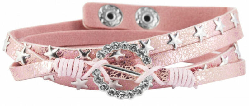 Többsoros kristályokkal kirakott divat karkötő, 40 cm - rózsaszín.  Márka: Cham Cham.  Modell: CC0398Mérete: 40 cm. Anyaga műbőr,  fém és kristály.