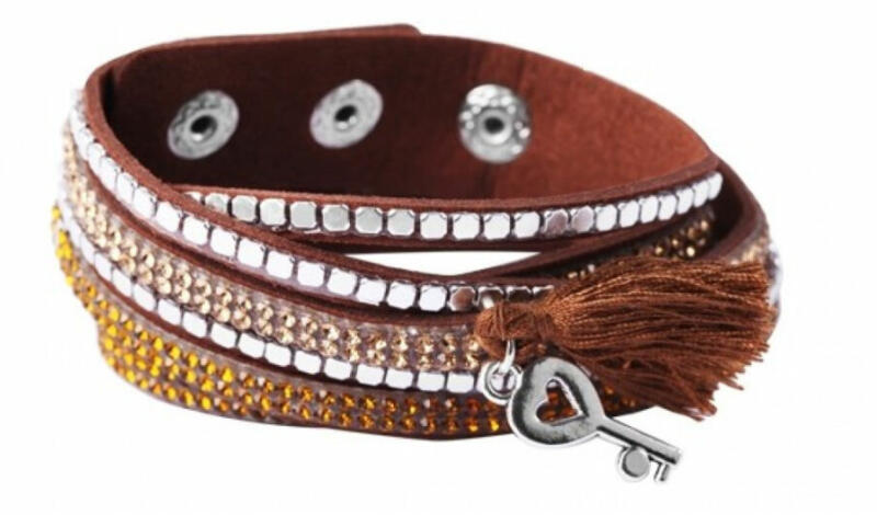 Többsoros kristályokkal kirakott divat karkötő, 40 cm - színes.  Mérete: 40 cm. Anyaga műbőr,  fém és kristály.