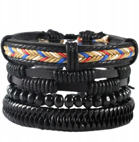 EdiBazzar 4 db-os férfi karkötő szett gyöngyökkel és boho stílusú bőr zsinórral (5905884062906)ALLEGRO
