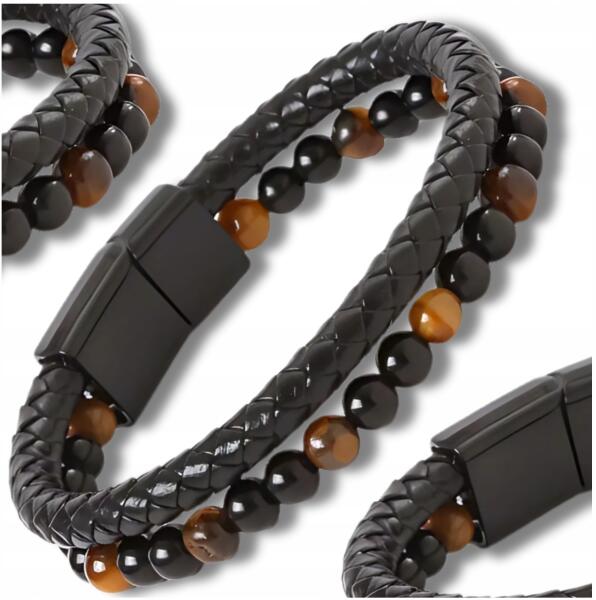 EdiBazzar Férfi szíj bőr karkötő természetes kövekkel gyöngyökkel (5905884063156)