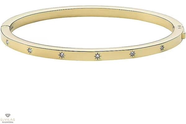 Jótállás: 24 hónap | Anyag: Nemesacél | Szín: Sárga arany | Felület: Fényes | Hosszúság: 17.5 cm | Zárszerkezet: Nyomógomb | Kő anyaga: Cirkónia | Díszítés: Arany PVD felület (JF03872710)