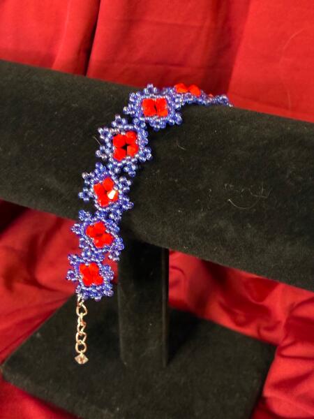 Kézzel készített karkötő, cseh gyöngyök, virágALLEGRO