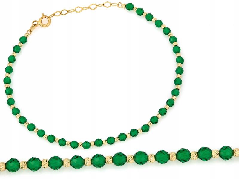 Lovrin Elegáns karkötő 585 aranyból és zöld smaragd gyöngyökkel 2.64g (58743338)ALLEGRO