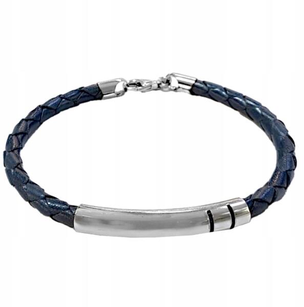 Lovrin Férfi karkötő, 925-ös ezüst, gránátkék bőr szíjjal, ajándékba (58712621)ALLEGRO