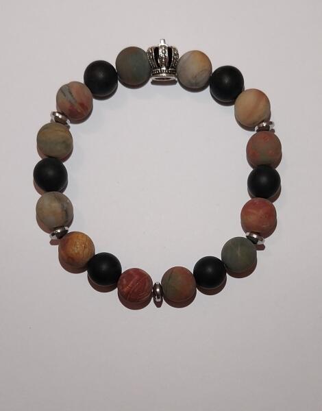 Picassojáspis-Ónix férfi karkötő korona dísszel Méret: 18cm