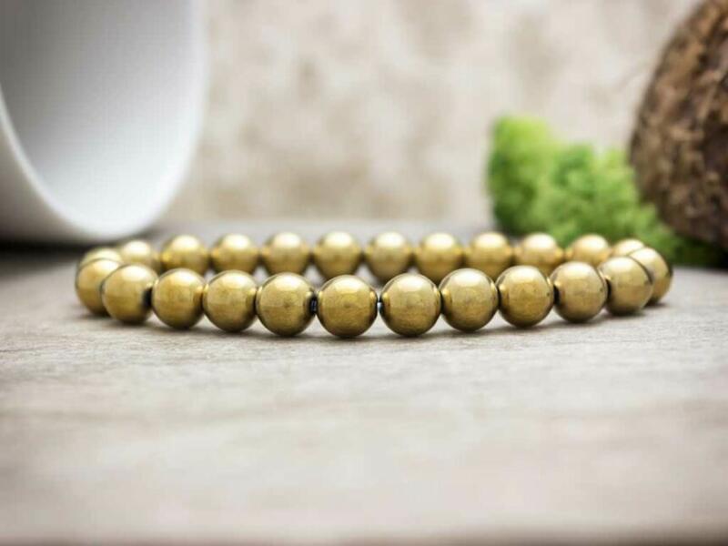 8 mm-es hematit ásvány gyöngyökből speciális gumira fűzött karkötő.