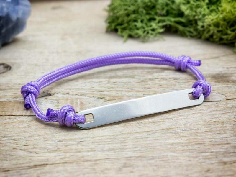 Paraméterek, termékleírás - R. M. ékszer Gravírozható lapbetétes lila microcord karkötő (17939RM)
