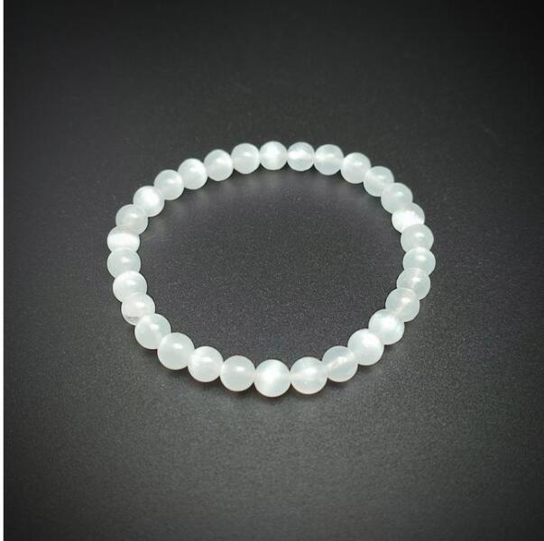 Szelenit golyó karkötő 6mm – 100% Valódi Szelenit KarkötőExkluzív 6mm-es Szelenit ásvány gyöngyökből készült karkötőEz a különleges karkötő 6mm-es Szelenit ásvány gyöngyökből lett gondosan megalkotva. A természetes ásványok nemcsak esztétikai értékkel bírnak, hanem erőteljes energetikai hatással is rendelkeznek. A 100% valódi Szelenit gyöngyök segítenek a testi és lelki egyensúly megteremtésében, miközben elegáns kiegészítőként is megállják a helyüket. Spirituális és energetikai hatásokA Szelenit ásvány híres arról, hogy: