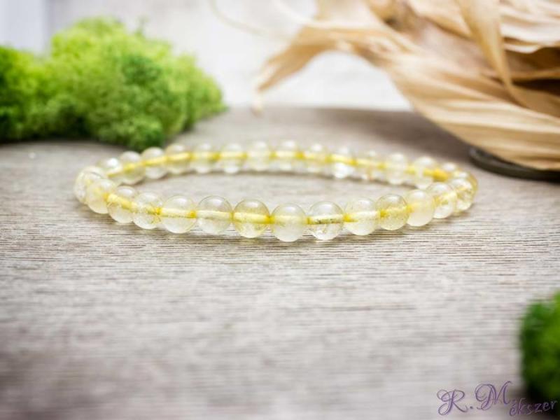 6 mm-es kvarc ásvány gyöngyökből speciális gumira fűzött karkötő.